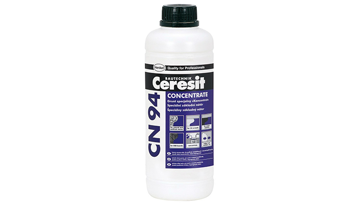 CERESIT CN 94 je napravljen za osnovno premazivanje podloga u unutrašnjim i spoljašnjim prostorima prije postavljanja samonivelišućih masa, reparacionih masa, ljepkova za keramičke i kamene pločice. Formulacija se posebno preporučuje za kritične podloge kao što su: keramičke pločice, disperzijski i epoksidni premazi. Proizvod jača površinu podloge i poboljšava prianjanje za podlogu. Može se nanijeti na anhidridne, cementne i mastik asfaltne estrihe, beton, obojene i nebojene drvene podloge, itd.
